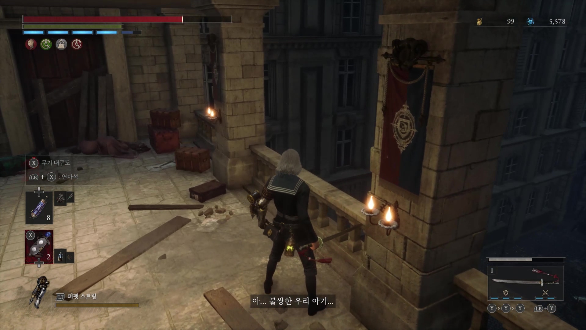 다시 사다리로 내려가서 큰 경관 인형과 싸우고 크라트 시청쪽으로 향한다.